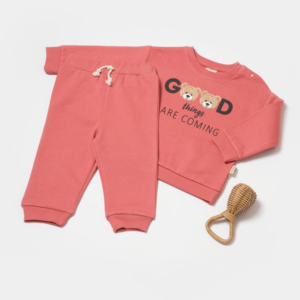 Το βρεφικό σετ οργανικό βαμβάκι ροζ 2 τεμαχίων Good Things χαρίζει στο μωρό σας άνεση, στυλ και φροντίδα σε κάθε στιγμή της ημέρας. Δημιουργήσαμε το σετ με παντελόνι και μπλούζα, ώστε να προσφέρουμε ένα ολοκληρωμένο και κομψό σύνολο.
